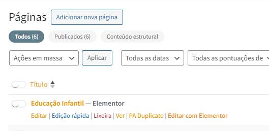 - Encontre a página que você deseja editar e clique em "Editar com Elementor".