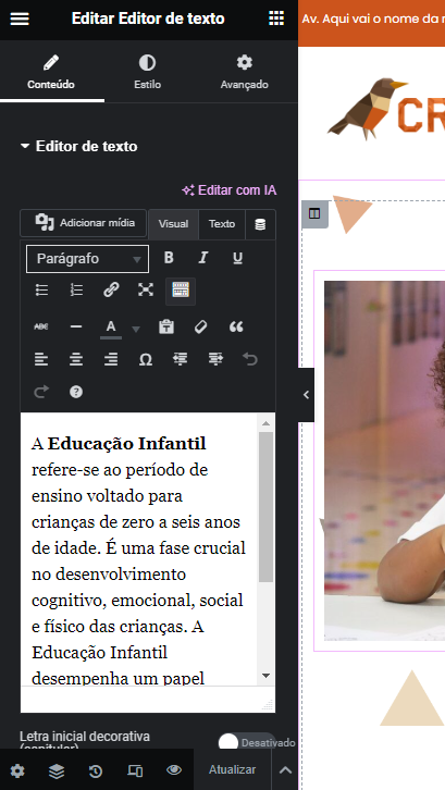 - Clique no texto. Uma nova coluna com opções de edição de texto aparecerá à esquerda.