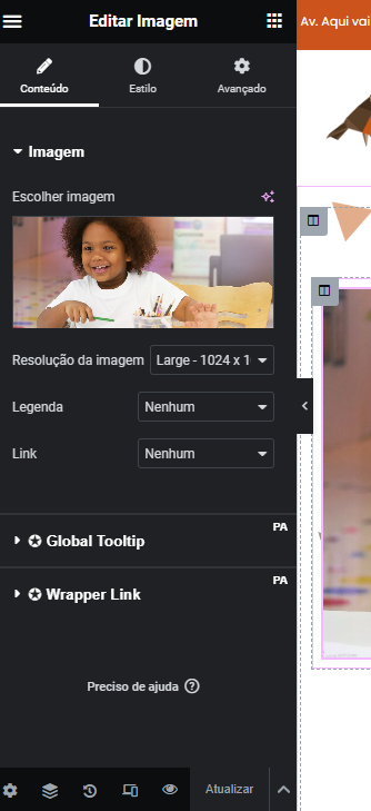 - Clique na imagem, e as opções de edição aparecerão na coluna à esquerda.